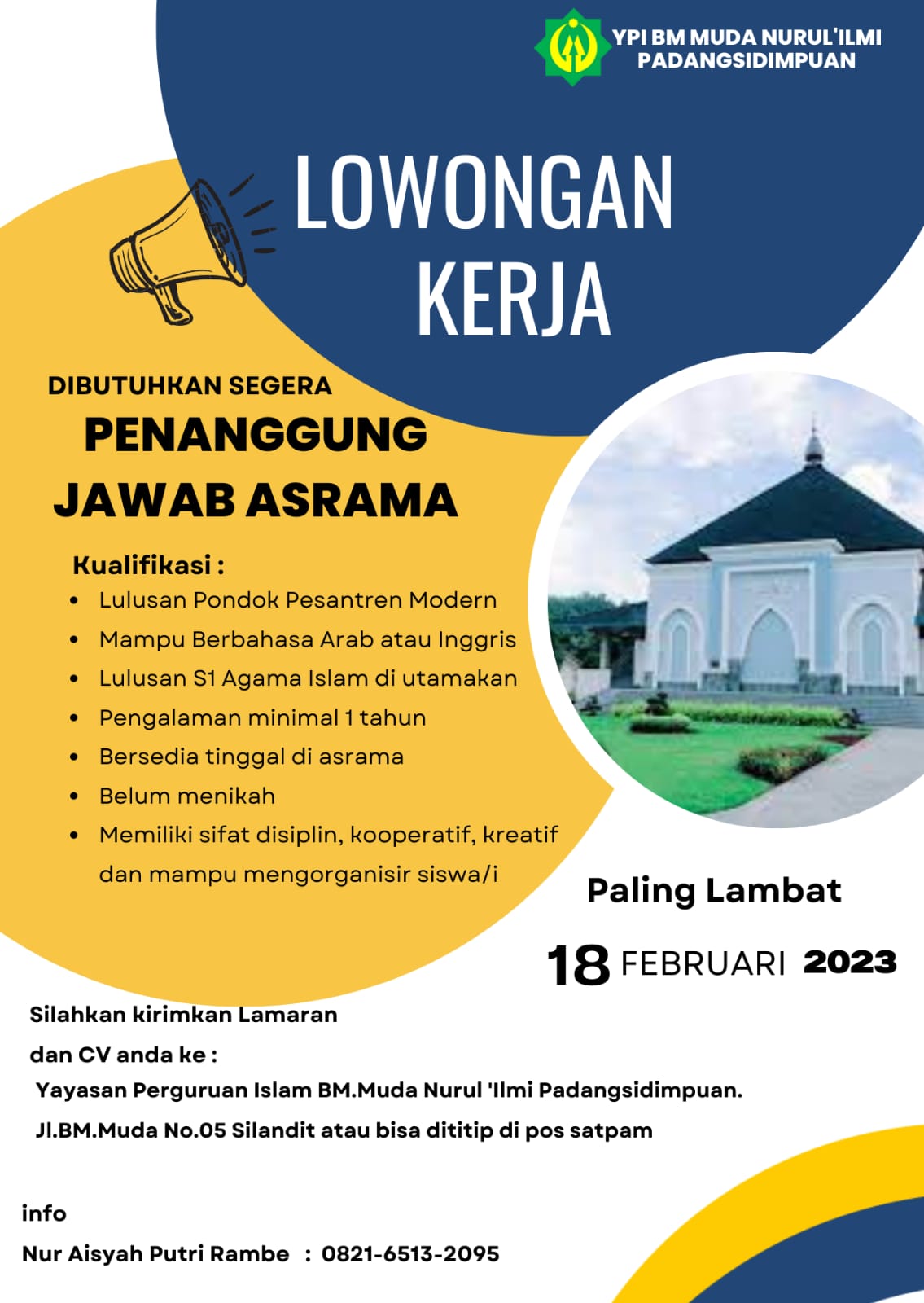 - Lulusan S1 Agama Islam diutamakan