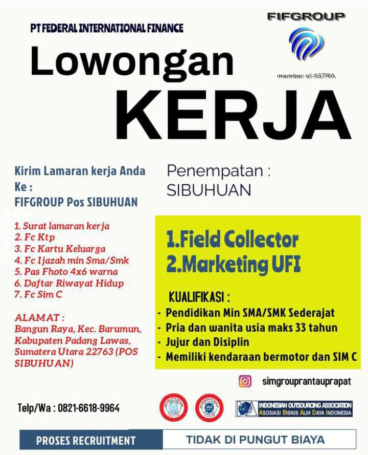 - Pendidikan Minimal SMA / SMK Sederajat